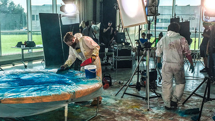 Semplice, esattamente come si evince dal video backstage di seguito, al mio azione, i lanciatori scagliano le polveri colorate (anallergiche, mi raccomando) contro la malcapitata o malcapitato di turno, fine. La telecamera ad alta velocità registra per circa 10 secondi, dopodiché si arresta automaticamente per via del buffering. Sapete com'è, per ogni secondo deve depositare 500 fotografie in alta risoluzione. La stessa cosa accade se impostate l'ultra slow-motion sul vostro telefonino: noterete che a una certa smette di registrare. La differenza sostanziale, nonché motivo per cui le camere ad alta velocità costano così tanto, sta nella qualità dell'immagine. I cellulari sono ancora lontani anni luce dalla resa delle telecamere. È una questione di spazio fisico...