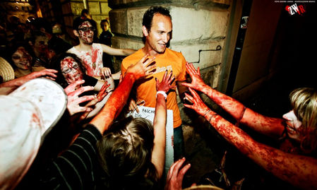 La nostra zombie walk, la ZWVR, nel 2013 ha battuto il record di partecipanti di tutte le manifestazioni analoghe in Italia. Oltre 2000 morti viventi che deambulavano per Verona, accompagnati dalle volanti della questura, con i poliziotti che si scompisciavano, i turisti che prima urlavano sorridenti e poi ci fotografavano, i bambini che impazzivano di gioia e obbligavano i genitori ad unirsi alla passeggiata goliardica.